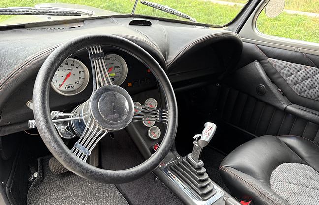 Interiör: Exceptionellt utförd ny inredning, sydd av fackman/möbeltillverkare. Stolar är hämtade från Corvette C5 och färgmatchade med övriga inredningen. Ratt, reglage, knappar och instrument är helt nya.