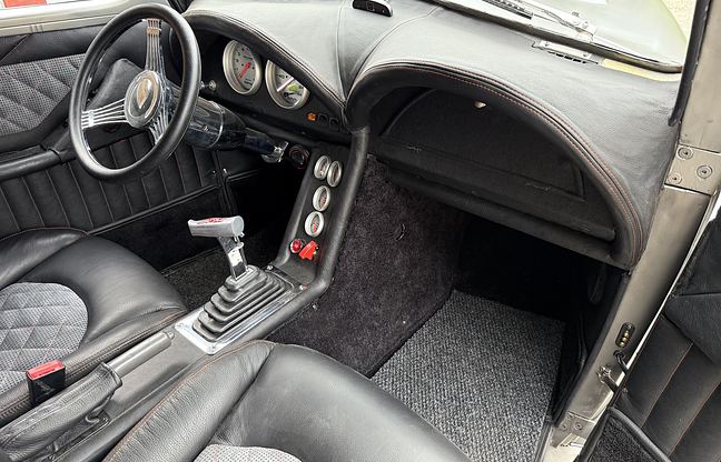 Modifikationer: Bilen är ett totalbygge där karossens skärmar breddats för att harmoniera med Corvette-teknik. Hela ramen är specialbyggd och anpassad för Corvette C5:s fram- och bakvagn, motor och växellåda. Motorn (Corvette C5, 350 hk) plockades isär och gicks igenom för att säkerställa optimalt skick, och hela interiören uppdaterades med stolar från Corvette C5 samt ny sydd inredning av möbelspecialist.