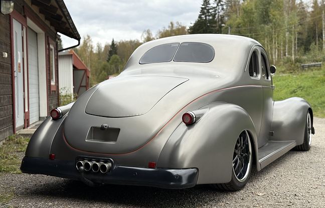 1939 Ford Fordor "Forvette" är ett unikt hantverk för entusiasten som vill sticka ut på gata, bana eller träffar. Med klassiskt 30-talsstuk, modern Corvette C5-drivlina och chassiteknik, samt en i princip oanvänd bil med garanterad 0-km mätarställning är detta ett drömbygge för nästa ägare att börja njuta av. Den professionella renoveringen, skräddarsydda inredningen och den långa delen nya originaldelar borgar för ett bekymmersfritt ägande.