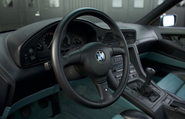Detta exemplar är en extremt ovanlig 850i med Color Line-paket (1 av 49 tillverkade), lackerat i den djärva färgen Barbados Grün metallic (1 av 16), i snygg kontrast till interiörens svarta nappaläder och detaljer i Barbadosgrönt på stolssektioner och dörrpaneler. Kombinationen utstrålar såväl klass som sportighet – och garanterar att du sticker ut såväl på träffen som på motorvägen. Lägg till att Color Line bara erbjöds till den europeiska marknaden och att endast 3 670 manuella 850i tillverkades, gör denna bil till något alldeles unikt!