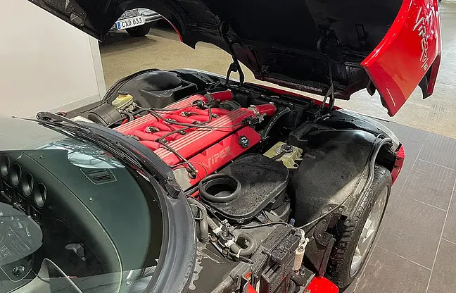 Nu har du chansen att lägga händerna på en riktig klassiker – Dodge Viper RT/10. Under huven sitter en enorm 8, 0-liters V10 med över 400 hk och 630 Nm, kopplad till en 6-växlad manuell låda.