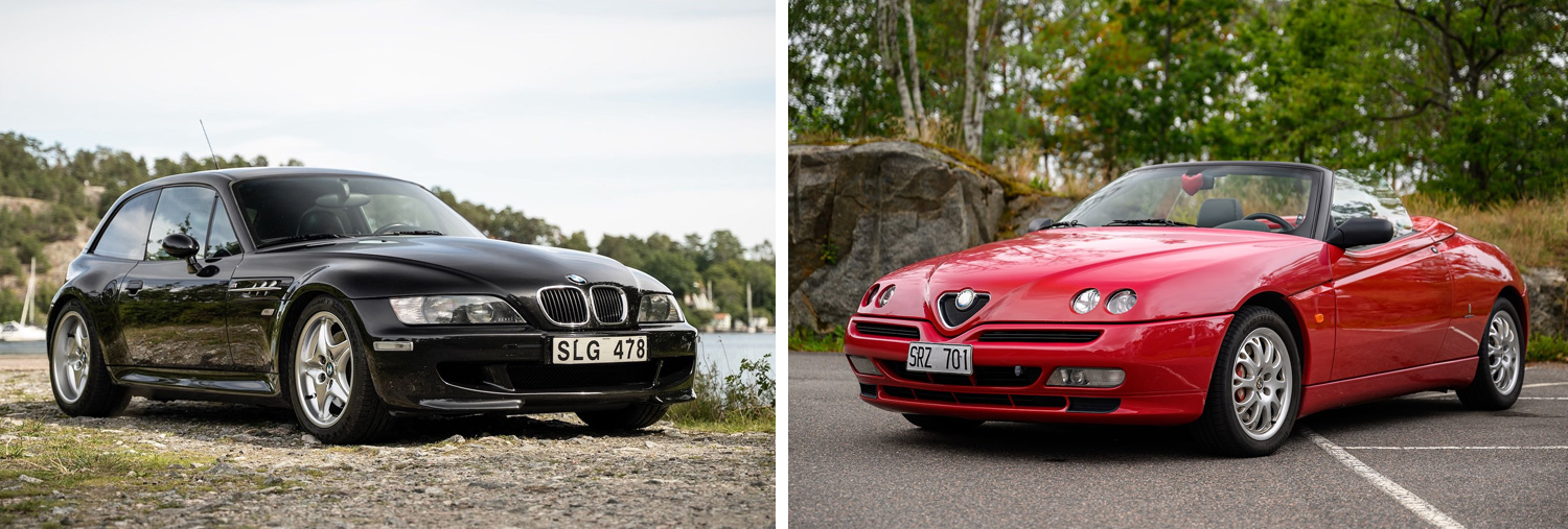 BMW Z3 och Alfa Romeo GTV/Spider fyller i år 30 år och blir därmed veteranbilar. Båda introducerades 1995 och är tydliga representanter för 90-talets entusiastbilar. Z3 stod för klassisk roadsterkänsla med bakhjulsdrift och fokus på körglädje, medan Alfa Romeos GTV och Spider lockade med stark design och massor av karaktär. Två olika uttryck – men båda är nu etablerade klassiker.Årets mest udda auktioner: Allt med motor hör hemma här!