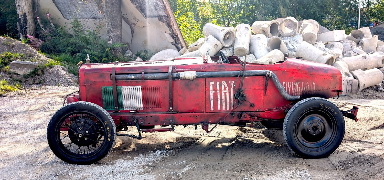 Flying Fiona är inte för den som söker katalogoriginalitet – men för dig som hyllar historia, kreativitet och konst i bilform. Detta är ett prisbelönat, handbyggt och personligt tolkande objekt, skapat ur resterna av en 1929 FIAT och förvandlat till en rå och brutal hyllning till 20-talets racingdrömmar. Med sin nybyggda kaross, modifierade chassi, felstavade modellbeteckning och en Chevrolet 230 rak sexa under huven är hon lika mycket personlighetsyttring som fordon. Här får du en bil som lever och andas 1920-tal – på sitt alldeles egna sätt.Allt mellan himmel och jord - För sanna entusiaster