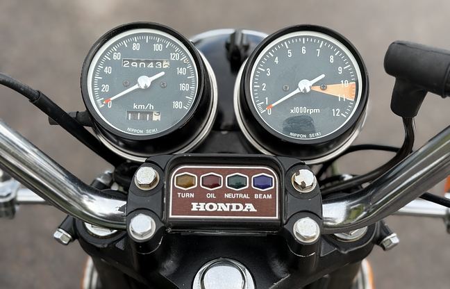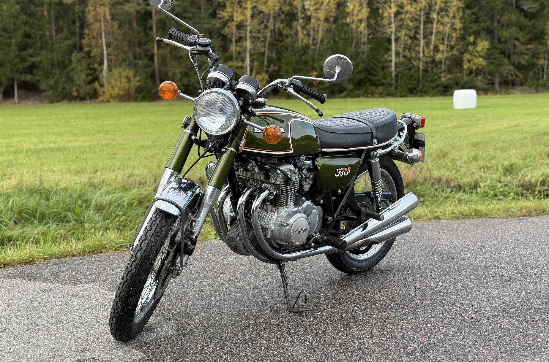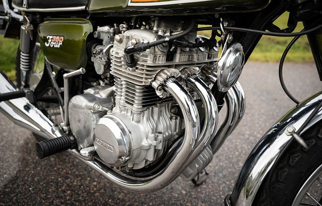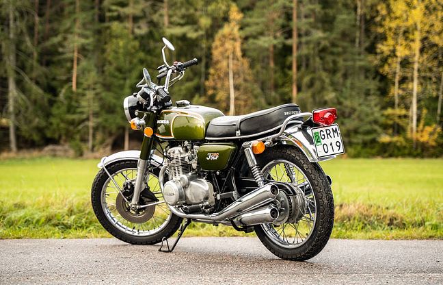 Die hier angebotene CB350 Four wurde in Schweden verkauft, hat einen Gesamtkilometerstand von 29.000 Kilometern und hatte insgesamt zehn Benutzer. Darunter befand sich eine ältere Dame, die das Motorrad drei Jahrzehnte lang besaß, sowie ein älterer Herr und Sammler, der es zehn Jahre lang in seinem Besitz behielt. Der Verkäufer erwarb das Motorrad aus nostalgischen Gründen und ließ es größtenteils stehen, da es für den aktiven Gebrauch als zu schade erachtet wurde.