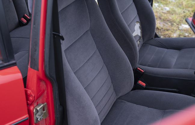 Innenraum: Laut Verkäufer insgesamt guter Zustand, jedoch mit deutlichen Gebrauchsspuren. Fahrersitz und mittlerer Teil der Rückbank weisen Bissspuren auf. Das Armaturenbrett hat zwei Risse an den üblichen Stellen. Der Dachhimmel ist in einwandfreiem Zustand und weist keine Lockerungsspuren auf. Lenkrad, Bedienelemente und Knöpfe funktionieren einwandfrei und haben kein Spiel.