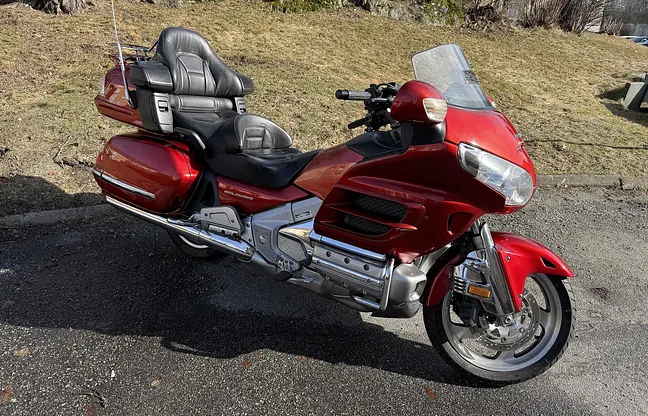 Dieses Beispiel ist eine Honda GL1800 A2 aus dem Jahr 2008. Der Kilometerzähler zeigt 145.000 Kilometer an, die laut Verkäuferangaben garantiert sind. Der Verkäufer erwarb das Motorrad am 30. September 2024 von einem Freund. Laut Verkäufer läuft der Motor einwandfrei, und das Motorrad eignet sich laut Beschreibung sehr gut für lange Strecken. Es ist mit einer Anhängerkupplung ausgestattet und verfügt über eine Windschutzscheibe im Bagger-Stil.