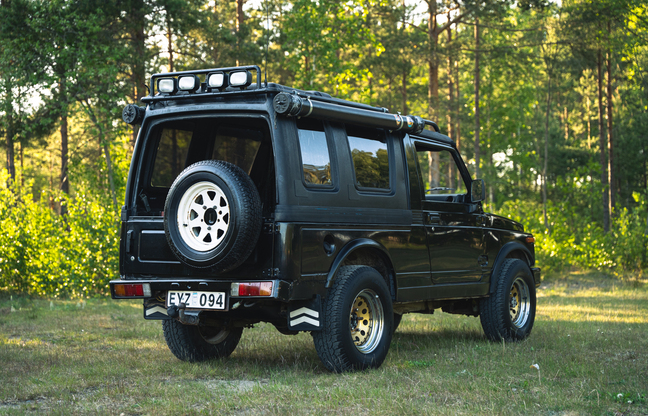 Der Suzuki SJ413 LWB (Long Wheelbase) ist ein kompakter SUV, der von 1984 bis 1998 von Suzuki hergestellt wurde. Er war Teil der SJ-Serie, die der Vorgänger der Suzuki-Modelle Samurai und Jimny war. Design: Der SJ413 LWB hatte ein kastenförmiges und robustes Design, typisch für kompakte SUVs seiner Zeit. Im Vergleich zum Standard-SJ413 hatte er einen längeren Radstand, was zusätzlichen Innenraum und verbesserte Stabilität bot. Motor: Der SJ413 LWB wird von einem 1,3-Liter-Vierzylindermotor angetrieben, der etwa 64 PS leistet. Es ist ein kompakter und kraftstoffsparender Motor, der sich für Geländefahrten und das tägliche Pendeln eignet. Allradantrieb: Der SJ413 LWB ist mit einem Allradantriebssystem ausgestattet, wodurch er eine Vielzahl von Geländen bewältigen kann. Die niedrige Übersetzung ermöglicht zusätzliches Drehmoment und bessere Geländegängigkeit. Geländegängigkeit: Der SJ413 LWB ist bei Geländefahrern aufgrund seiner kompakten Größe und hervorragenden Manövrierfähigkeit beliebt. Sein robustes Leiterrahmen-Chassis, die stabilen Achsen und die gute Bodenfreiheit tragen zu seiner Geländegängigkeit bei. Innenraum: Der Innenraum des SJ413 LWB ist schlicht und zweckmäßig, mit einfacher Steuerung und funktionalen Merkmalen. Je nach Konfiguration bietet er Platz für bis zu vier oder fünf Passagiere und verfügt über umklappbare Rücksitze für zusätzlichen Laderaum.