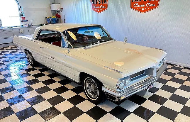 Ausgestattet mit den begehrten 8-Lug-Felgen, einem Markenzeichen der Pontiac-Topmodelle der frühen 60er – optisch ansprechend und technisch fortschrittlich.