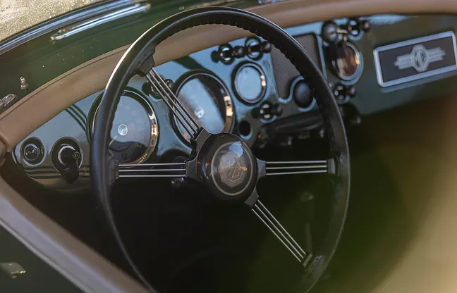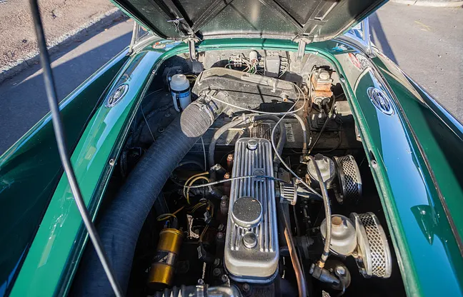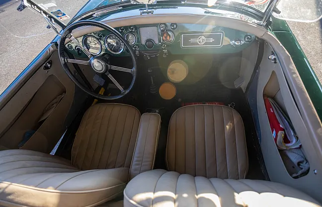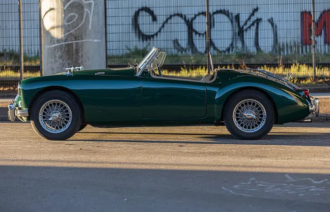 A tastefully preserved 1958 MGA 1500 Roadster with documented family history since 2005 and a practical upgrade to a 5-speed gearbox. Well-maintained paint and chrome, good mechanics and an interior with the right patina. Known complaints are a non-functioning fuel gauge, minor scratches on the driver's seat backrest and a minor oil leak from the rear axle that is noticeable after winter storage. For those who appreciate a classic MGA 1500 in genuine condition, with heritage certificates and original documents, this is an attractive and smooth-driving example.