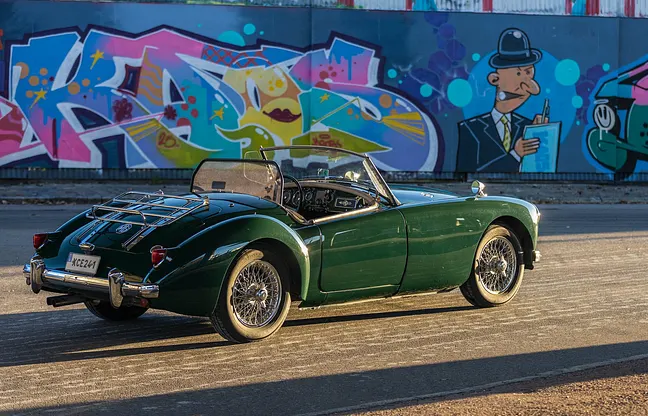 The MG MGA 1500 was introduced in 1955 and quickly became an icon of British sports cars. The bodywork, designed by Syd Enever, is low and streamlined and built over a separate ladder frame. Rack and pinion steering, independent front suspension and twin carburettors on the B-series engine were standard. The 1958 1500 models retained drum brakes all round and the clean roadster aesthetic that many enthusiasts consider to be the most classic version before the 1600 arrived.