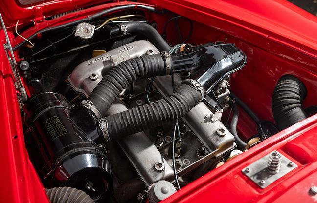 Modifications and improvements: The car has had a body and sheet metal renovation followed by a repaint. The engine was renovated after 2005. The brake system was reviewed and renovated for inspection in 2025. The Nardi-type steering wheel is a period accessory rather than an original part.