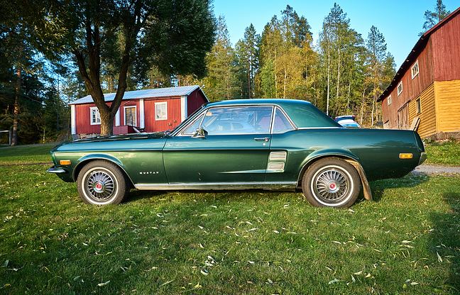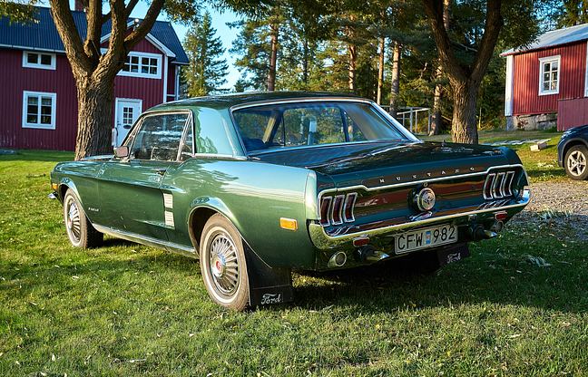 The 1967 Ford Mustang was the culmination of the first generation of Ford's "pony car", with retro-modern lines, improved handling and extensive equipment that set the standard for American sports coupes in the 1960s. The 1967 model year featured several technical innovations such as a stronger body and the possibility of larger engines. This Mustang 65 A Hardtop is a classic example and attracts collectors thanks to its authentic expression and model-specific details.