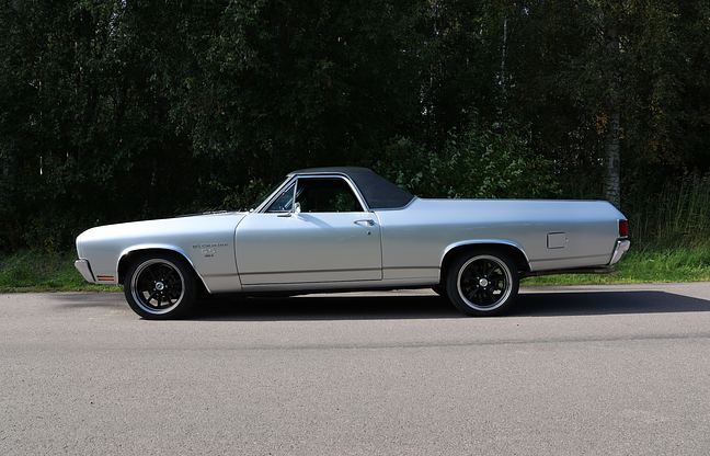 A Canadian imported Chevrolet El Camino from 1970 with SS look that has been restored with a refurbished 454 and 400 TA box, has upgraded brakes, shock absorbers, exhaust system and aftermarket rims with spacers. The car has been repainted in the original color and the overall impression is said to be good both outside and inside. If you are looking for a fun to drive El Camino with upgraded technology in good mechanical and cosmetic condition, this is an interesting example, with the reservation that the equipment level and full history are not determined.