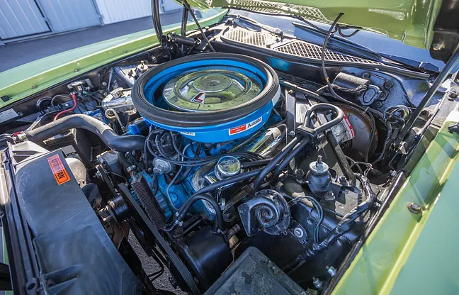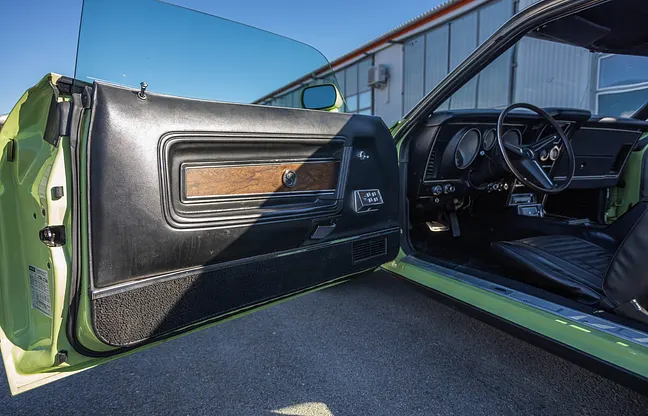 Body and exterior : The car is fully painted in parts in 2022 and the paint is said to be in very good condition. The driver's door has been replaced with a new one. The glass is original and is described as good considering its age. The chrome, moldings, headlight lenses and emblems are said to be in very good condition. The rear spoiler and other Mach 1 attributes give a period-correct expression.