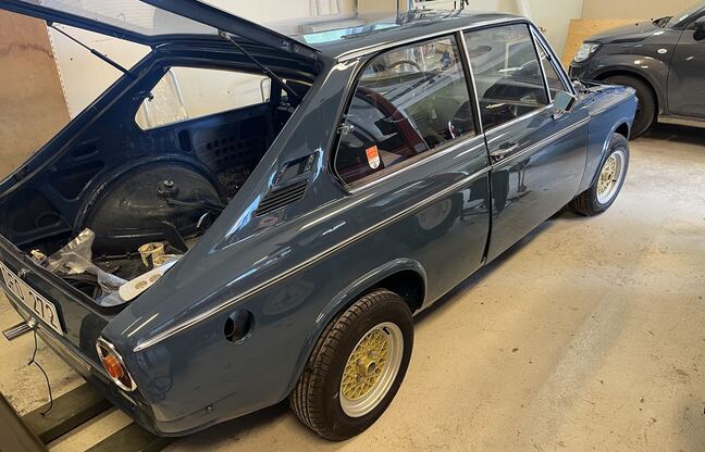Here is a chance for those who wish to assemble something unusual during the dark days of winter! Domestically sold BMW E6 2000 Touring from 1972 with approx. 133293km on the odo. Over the years, the car has had 14 registered owners, however, it cannot be ascertained how many of these are actual owners versus users. The current owner bought the car in 2014 and renovations have been slowly carried out over the years where, among other things, the bodywork has been both rust-treated and painted in the company's original colour. Work that remains to get the car ready for inspection includes fitting the interior, moldings, adjustment and various small fixes that appear during a reassembly. The engine was running when the car was bought in 2014 but was never inspected as renovations began shortly after the purchase. Over the years, the car has traveled shorter distances to and from the paint shop, mechanic and garage. As of today, the car does not run as the mechanical fuel pump is probably dead and the battery is not recharging.