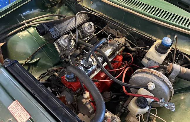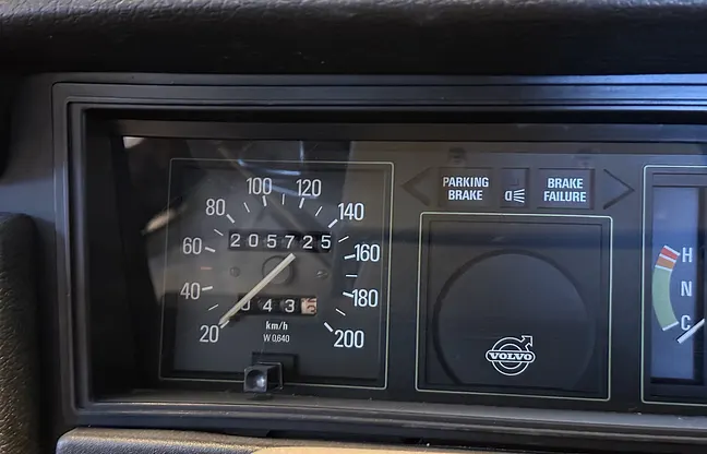 This example is described by the seller as a 142 Deluxe, model year 1973, with a current odometer reading of 205,725 kilometers. According to the seller, the odometer reading can be guaranteed. The car cannot be driven at present due to a reassembly that has begun after an engine overhaul. The cardan shaft is loose next to it, the gear lever has been removed and the throttle cable is loose, a new throttle cable is included. The seller also states that the front brake calipers are new. The interior is mainly original with wear and tear, and the car has cosmetic flaws in the paint and bodywork that are described in more detail below. Documented service history is missing.