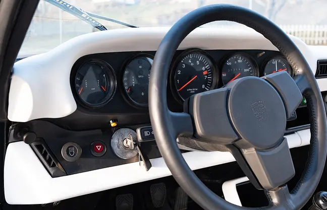 Modifications and improvements: The bodywork is modified with widened fenders and slantnose front. The interior has been upgraded to a turbo-style specification. The drivetrain is equipped with a turbo vane and pressure plate, according to the seller. The origin and extent of the conversions are not documented in the accompanying documents, but the seller refers to previous oral information from experts about the background of the conversions.