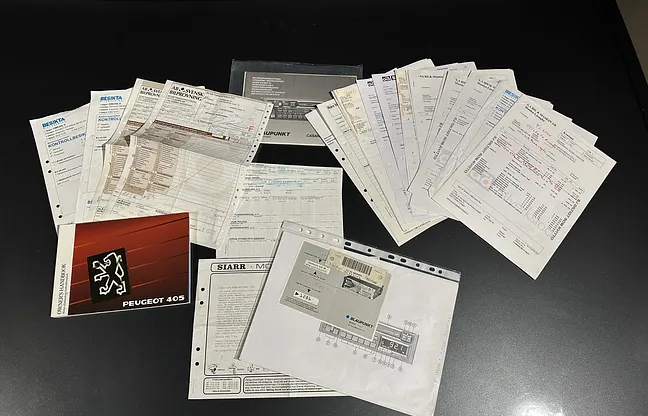 According to the seller, a major service with oil and filter and brake overhaul was performed in February 2025. There is an extensive amount of receipts for measures carried out over the years, from the 1990s to the present. Service book or stamps are not specified in the form, but the supporting documentation in the form of receipts and protocols is stated to be extensive.