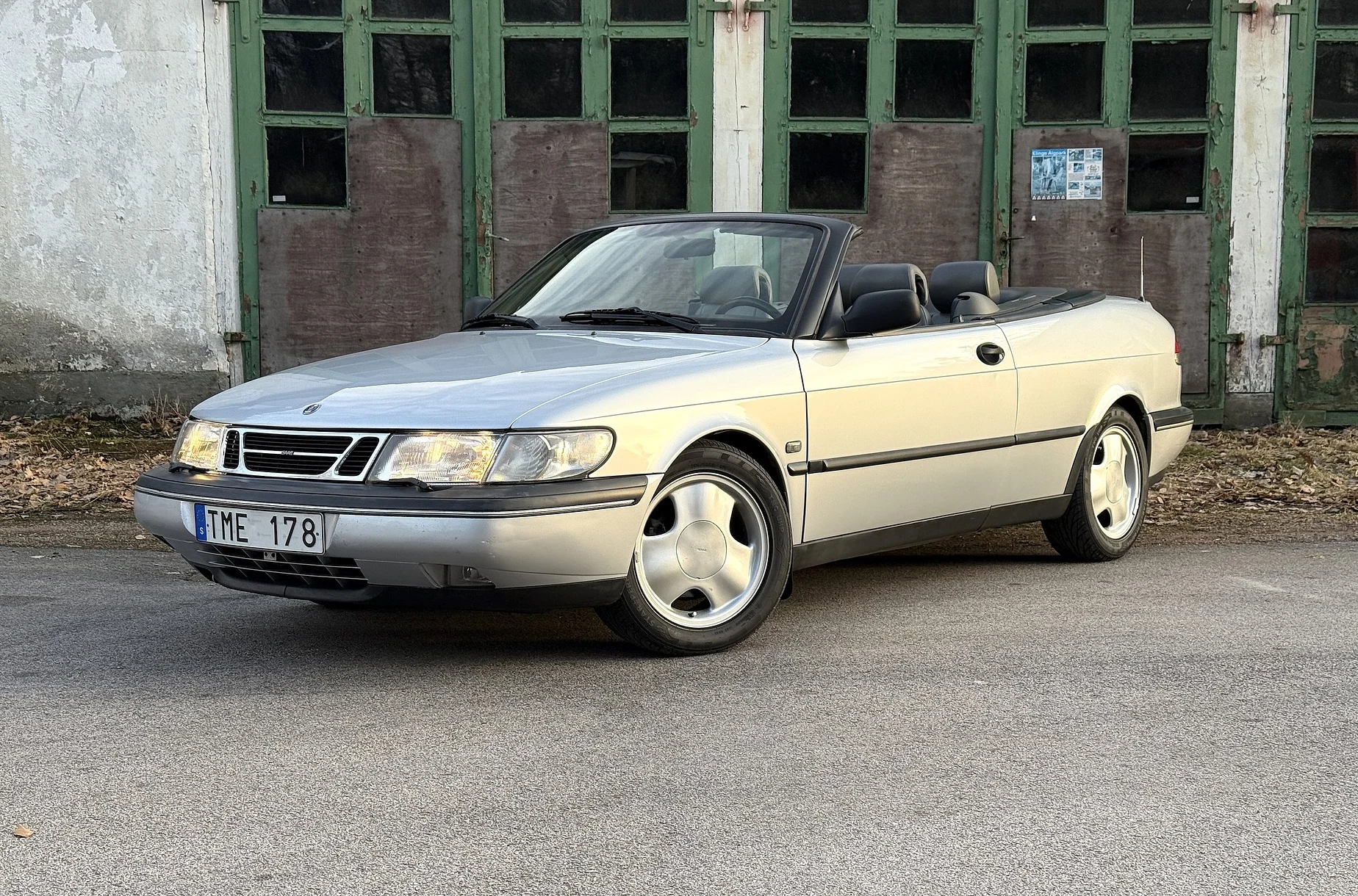 This example is a Saab 900 SE Cabriolet, model year 1996 , equipped with a 2.0 liter turbo engine of 185 hp and Sensonic gearbox. The car is imported from Austria and is therefore not sold in Sweden. The odometer reading is 157,713 km and is stated as guaranteed by the seller. According to the seller, the combination of silver with a blue soft top is unusual, and the Sensonic in the convertible is mentioned as being particularly hard to find. A CD player is mounted in the trunk.