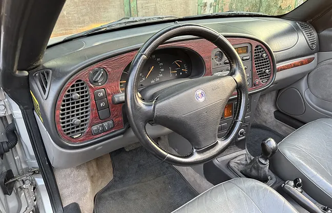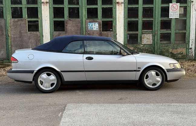 “Well-maintained SAAB 900 SE Cabriolet from 96 in unusual spec with silver paint and blue cab”
