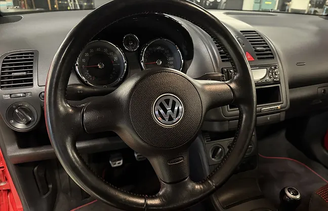 This example is said to be 1 of 36 Swedish-sold Lupo GTI. According to the seller, the car was one of the first three delivered to Sweden and it has appeared in several Swedish car magazines over the years. Odometer reading at the time of advertisement: 88,500 km, and the seller guarantees the odometer reading. The number of previous owners is said to be 6 owners and 3 users. Color scheme: solid red. Two keys are included. Complete documentation with original service book, manuals and service records is said to be available.