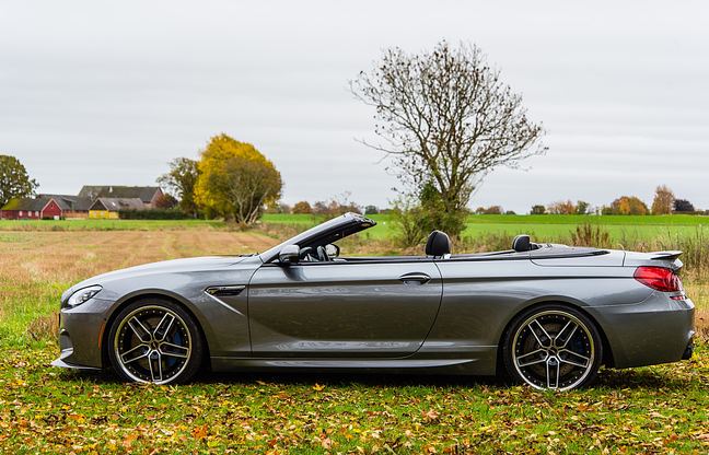 The BMW M6 Cabriolet is a gran turismo that combines long-distance comfort with hair-raising (!) performance. Under the hood sits the M division's S63B44TU, a 4.4-liter V8 with twin turbo. In standard form, the model delivers 560 hp and 680 Nm via a 7-speed M-DCT with active M differential, which provides high usability on the road and impressive lap times on the track. The convertible is known for its low center of gravity and fine chassis balance, not to mention the sliding possibilities with the roof down and being able to enjoy the exhaust rumble from the quad pipes.