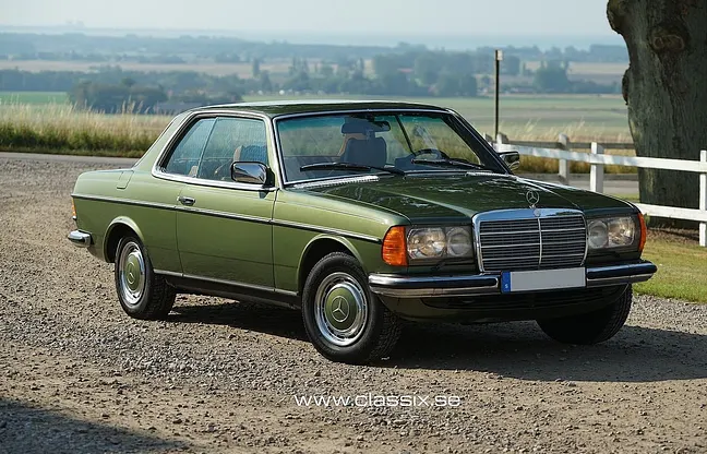 A very fine Mercedes 280 CE in the fantastic color Cypress Green. The car has undergone a professional repaint, and in connection with this many parts were replaced. It is completely rust-free, both in the bodywork and underneath. Beautiful brown interior.