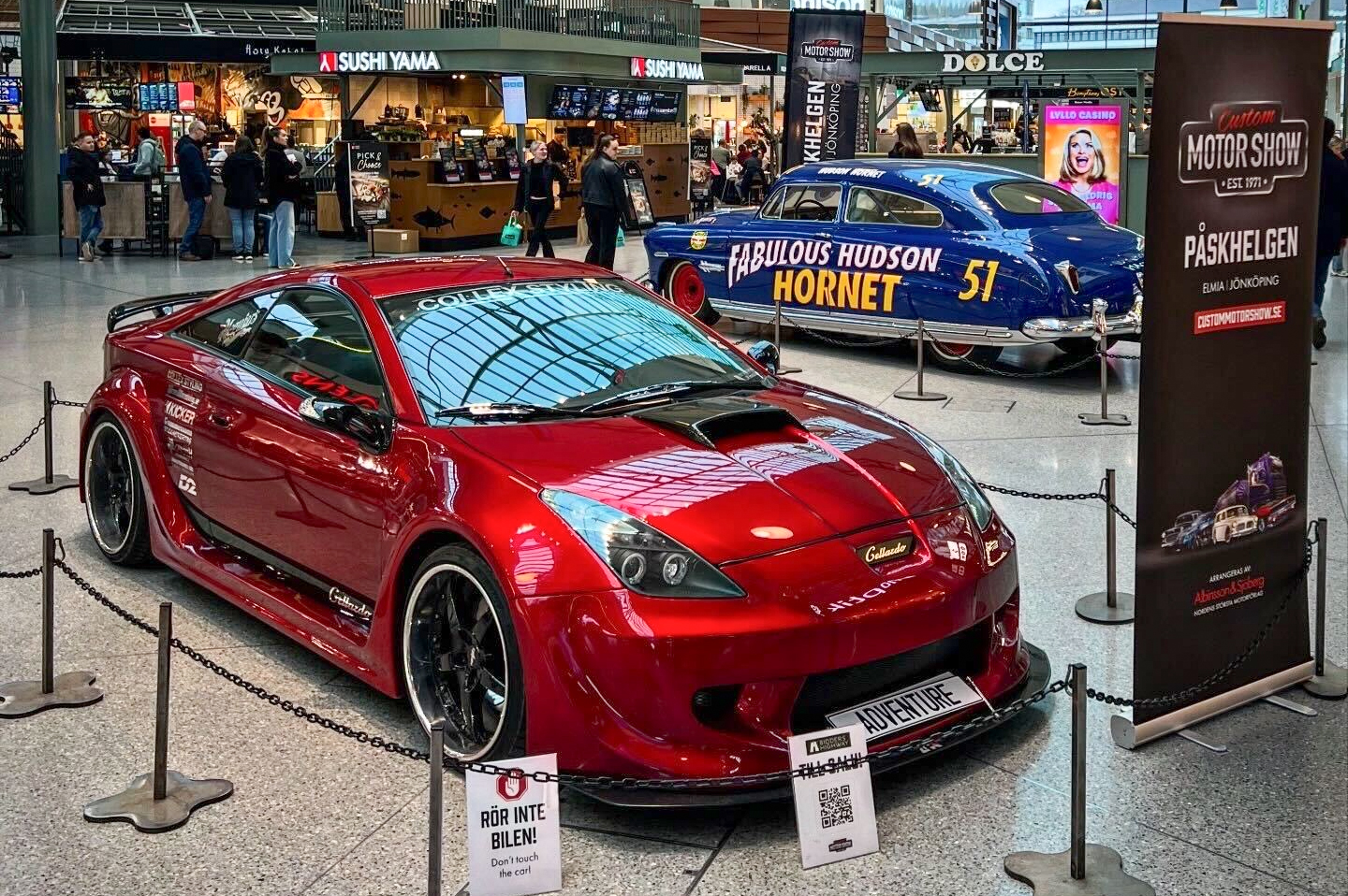 Two of the cars, a 2002 Toyota Celica APR GT300 and "Doc Hudson's" 1950 Hudson Pacemaker Brougham, were on display at the popular Asecs shopping center in Jönköping to promote the Custom Motor Show. Both items were sold without reserve.