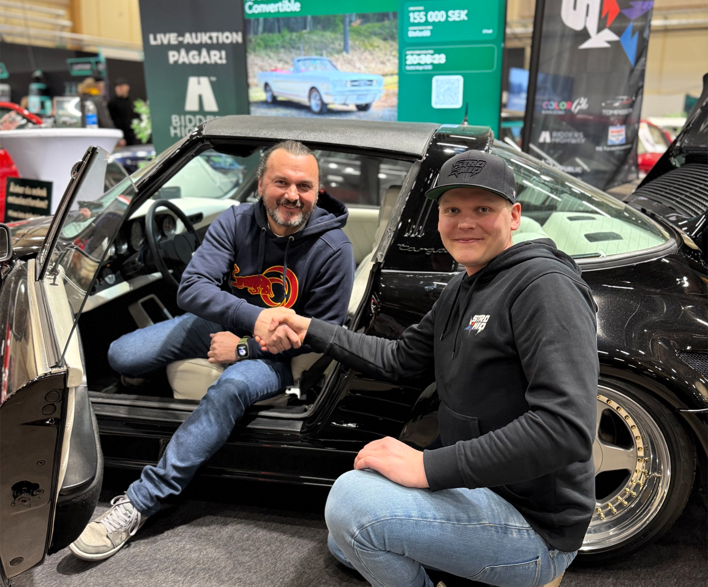 But the BMW was far from alone in getting the pulse racing at the stand. There was also a lot of excitement around the black 1976 Porsche 911 Targa Flachbau, which attracted great interest and was heavily bid on during the fair. After a whopping 68 bids, the final price stood at 439,675 SEK. There too, it became clear how strong the combination is of the right car, the right audience and a live format where each new bid is felt both in the air and in the bodies of those following the auction on site.
