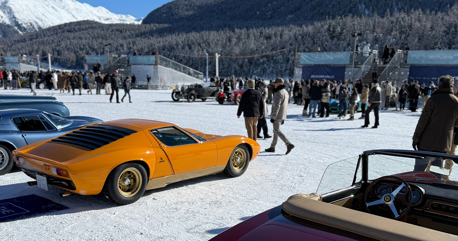 The ICE, the International Concours of Elegance, has quickly established itself as one of Europe’s most talked-about and exclusive automotive events. Set on the sparkling ice of Lake St. Moritz, rare classics, iconic sports cars and hand-picked modern masterpieces come together in an environment that is equal parts haute couture, motorsport history and Alpine winter scenery. The overall experience is taken seriously here – to the point where waiters elegantly glide across the ice on skates while serving champagne to guests.