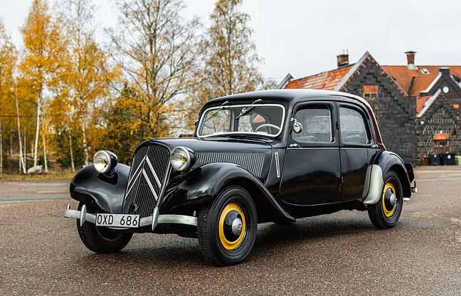 1951 Citroën Berline B11 Sport är en klassisk modell som representerar efterkrigstidens banbrytande teknik och formspråk från Citroën. Modellserien Traction Avant satte standarden för framhjulsdrift och självbärande kaross och blev snabbt känd för sin komfort, stabilitet och avancerade ingenjörskonst.