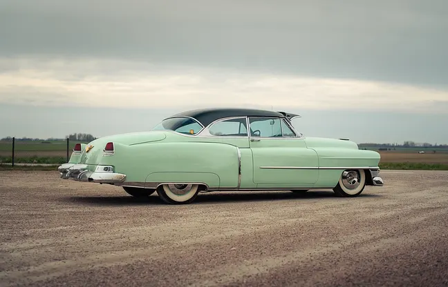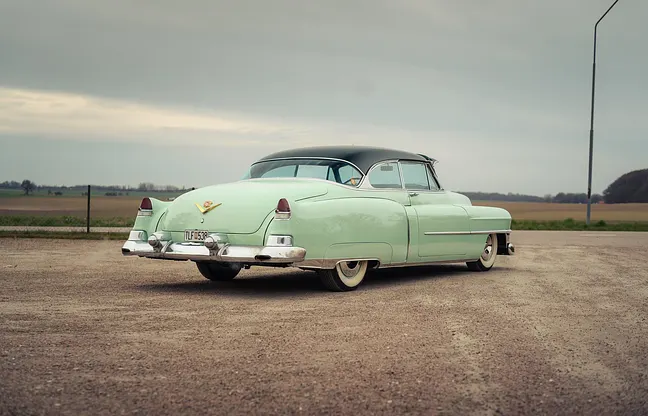 En Cadillac Serie 62 från 1953 med omfattande kosmetisk och mekanisk genomgång, omlack invändigt och utvändigt, ny inredning i grönt skinn och vinyl samt omkromade detaljer. Exemplet har en original gangsterkeps och ny framruta, medan kofångarna har showchrome enligt säljaren. Drivlinan är renoverad men växellådan behöver justeras och bränslepumpen åtgärdas innan bilen kan användas. Däcken är fina men åldrade och bör ses över. Avsaknad av dokumenterad historik noteras, men helhetsintrycket är en långt gången renovering där avslutande justeringar och driftsäkring återstår för att bilen ska kunna nyttjas enligt tänkt användning.