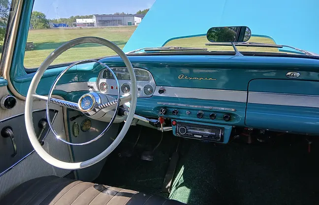 Olympia Rekord var en av Opels mest populära modeller under 1950-talet och kännetecknas av sin tidstypiska design med rundade former och kromdetaljer – ett charmigt stycke bilhistoria från efterkrigstidens Europa. Bilen är fri från rost, och yttre modifieringar, vilket gör detta till ett sällsynt välbevarat exemplar.