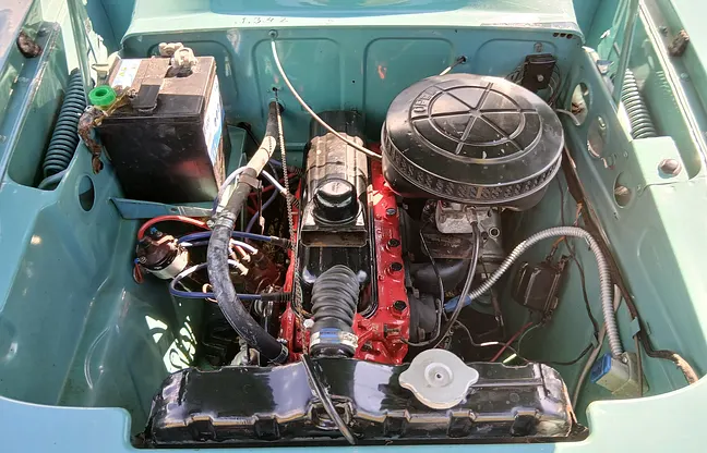 Mekanik och funktion: Motorn är i gott skick utan oljeläckage och är helt original, liksom växellåda och drivlina. Bromsarna är godkända och bilen är fullt körbar med fungerande mekanik rakt igenom.