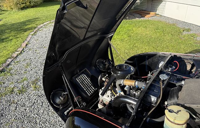 Mekanik och funktion: Utbytesmotorn är enligt dokumentation bytt innan avställning och hade då gått under 2000 mil (år 2022). Motorn är lättstartad och går jämnt, förgasaren är modifierad för förbättrat flöde och bilen är utrustad med ett 2-tums avgassystem. Växellådan är en nyrenoverad fyrväxlad modell och drivlinan fungerar fullt ut. Bromssystemet genomgick en komplett renovering 2022. Samtliga mätare, inklusive klockan, är fullt fungerande.