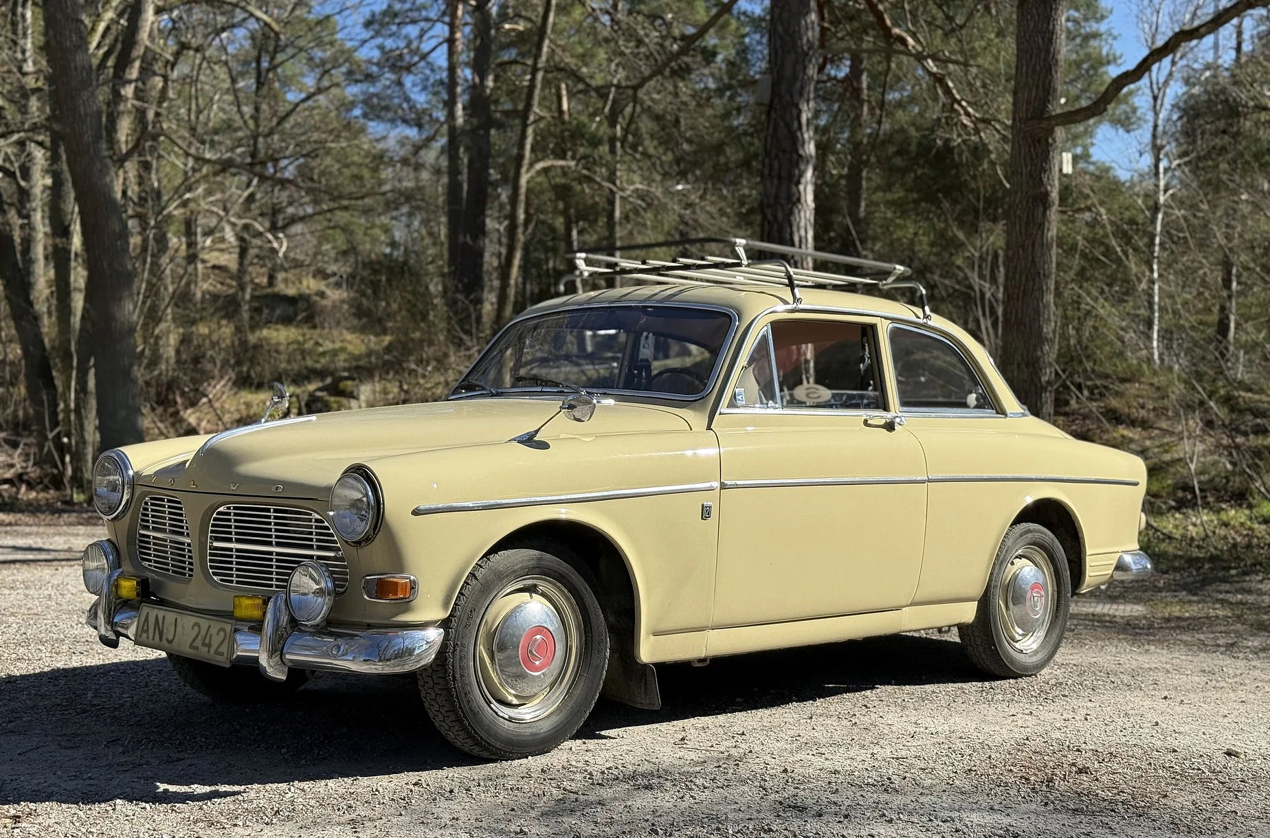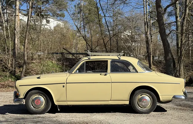 En svensksåld Volvo Amazon 13134 Vd från 1964 med familjehistorik sedan ny, två brukare och mycket doumentation. Karossen visar ett mindre märke och tidigare bytt höger framskärm med omlackering i originalkulör. Interiören är välbevarad med några åldersrelaterade anmärkningar, motorn går bra och drivlinan uppges fungera som den ska. Till bilen följer ett tidsenligt lasträcke med original måttanpassad tygkoffert. Ett attraktivt utgångsläge för den som söker en ärlig Amazon med dokumenterad bakgrund och låg användning.