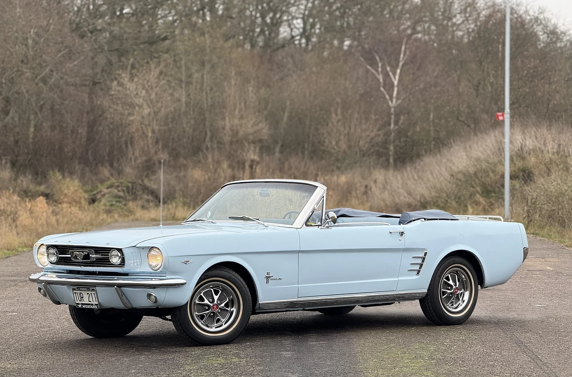 En 1966 Ford Mustang Cabriolet som nyligen färdigställts efter en lång och genomgripande renovering. Utrustad med servostyrning, servobromsar, skivbromsar fram, elhydraulisk cab och bagageräcke. Drivlinan är uppgraderad med nyrenoverad motor inklusive en mildare prestandakam och ny förgasare samt nyrenoverad automatlåda. Interiör och cab är nya, kromdetaljer likaså. Mätarställning cirka 55 900 km, total tidigare körsträcka okänd.