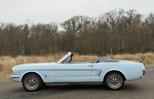 Ford Mustang Cabriolet 1966 tillhör den sista årsmodellen av den tidiga första generationen innan den större karossuppdateringen kom 1967. 1966 års bilar kombinerar den klassiska proportioneringen med en rad förbättringar i detaljer, och cabrioleten är en av de mest eftertraktade konfigurationerna tack vare sin rena design och härliga öppen-känsla.