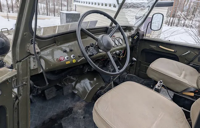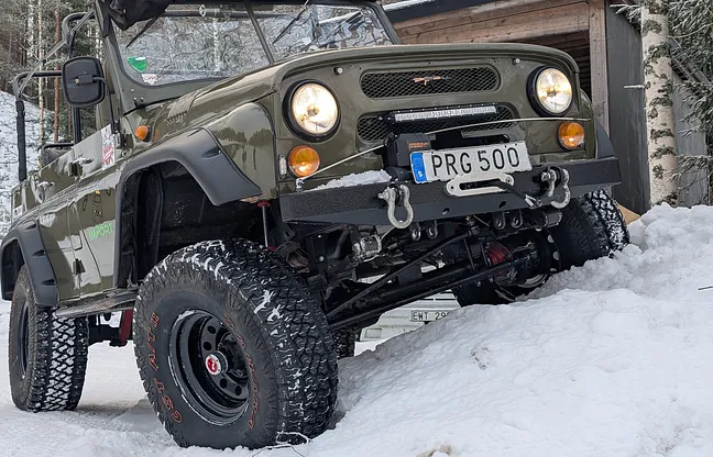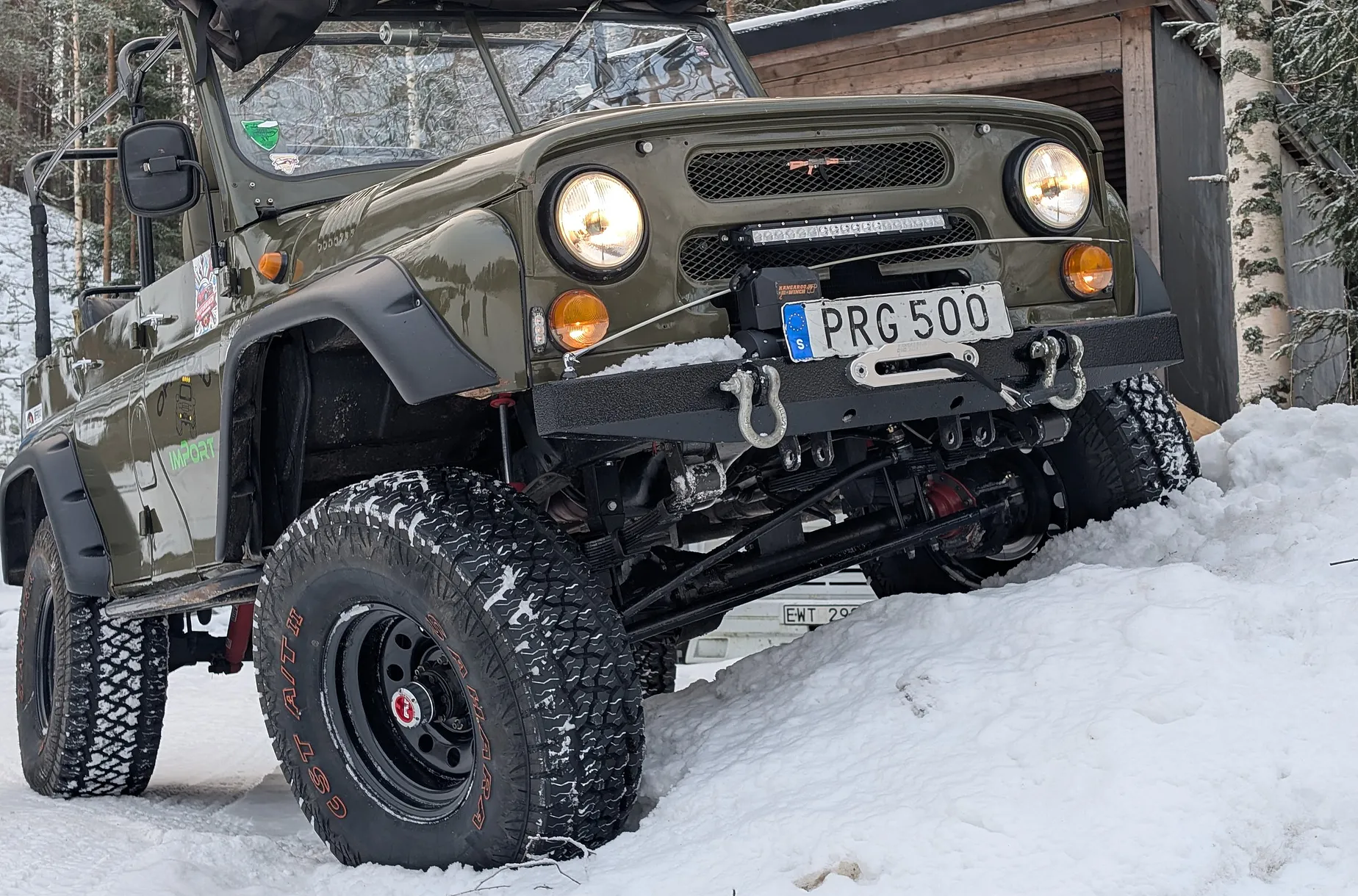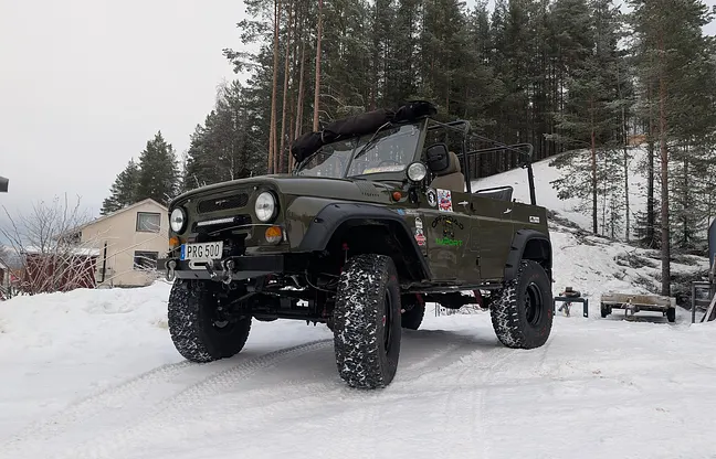 UAZ 469 introducerades i början av 1970‑talet som en lätt militär terrängbil med fokus på robust konstruktion, enkel servicebarhet och hög framkomlighet. Denna modell har blivit uppskattad av entusiaster för sin okomplicerade mekanik, stegram och förmåga att ta sig fram där många andra fordon ger upp. Detta exemplar från 1973, nu till salu, kombinerar den klassiska grundkonstruktionen med omfattande uppgraderingar för hård terrängkörning.