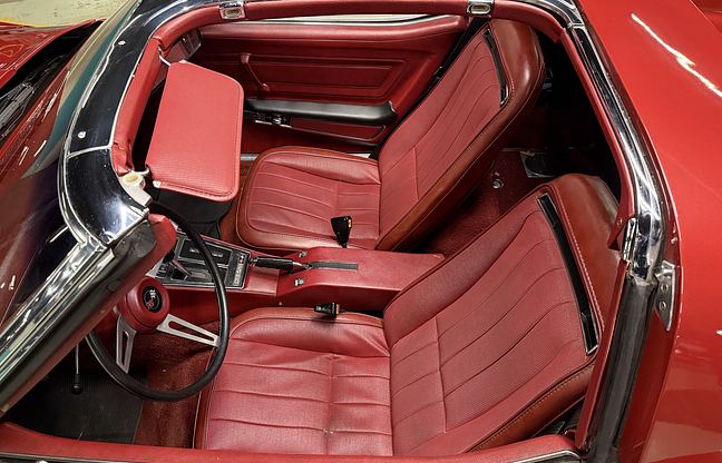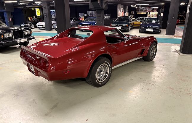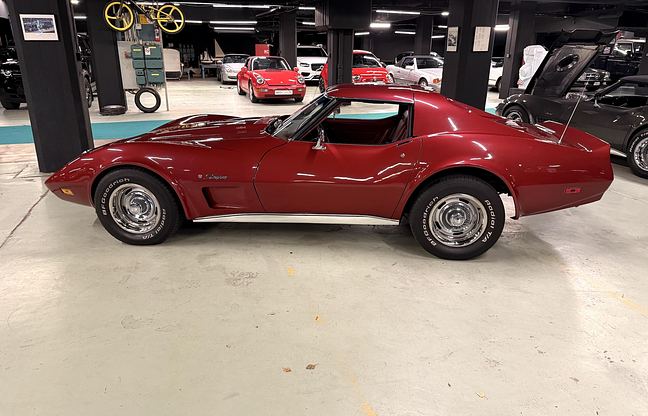 En svensksåld 1974 Corvette Stingray med big block 454, automat och röd interiör, i ett välhållet förarvänligt skick med korrekt ålderspatina. Lacken är fin med mindre bruksspår, interiören är ovanligt fräsch för årsmodellen och tekniskt uppges bilen gå mycket bra. Nyligen servad med fokus på växellåda och tätningar. Några kända punkter kvarstår att åtgärda, däribland kupéfläkt, oljetrycksmätare, fläktkåpa samt ett sprucket högerspegelglas. Däcken är äldre och bör ses över inför aktiv körning. För den som söker en dokumenterad, svensksåld C3 från sista året med 454 är detta ett attraktivt exemplar på Bidders Highway.