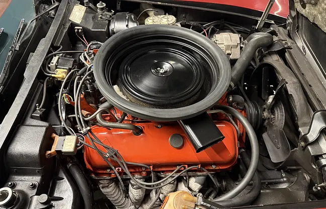 Mekanik och funktion Motorn uppges vara i mycket bra skick och gå fint med det typiska big block-ljudet. Växellåda och drivlina fungerar. Oljeläckage mellan motor och växellåda har nyligen åtgärdats. Det finns en mindre läckage/svett från styrservon. Bromsarna fungerar och bilen är nyligen besiktigad utan anmärkning. Vid provkörning drog bromsarna något snett men det förbättrades efter några inbromsningar.