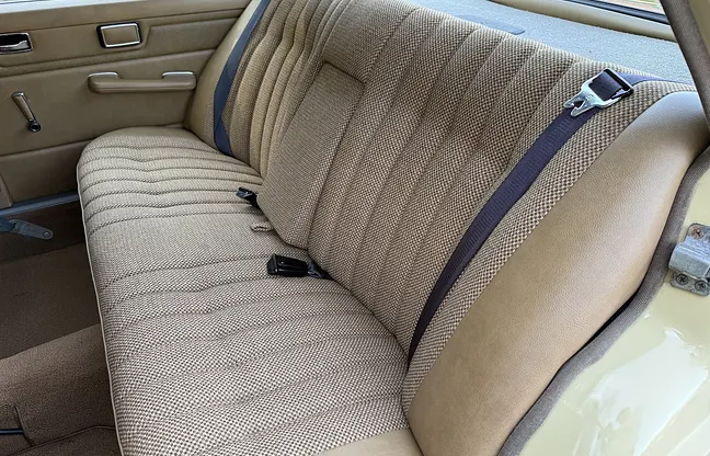Interiör Interiören är i fint skick. Förarstolen är något nedsutten, baksätet uppges vara i nyskick. Mattorna är hela och fina. Innertaket är mycket fräscht, helt och utan missfärgning. Ratt, reglage och knappar är i bra skick med anmärkning på kromet på ljusomkopplarknapp/blinkersspak som är något nopprigt. Alla reglage är hela och funktionsdugliga enligt säljaren. Den har till och med original Blaupunkt-radion kvar.