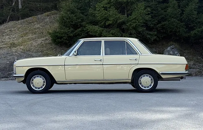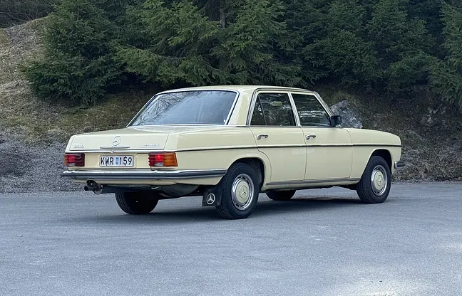Mercedes-Benz 230 (W114) tillhör den så kallade Strich Acht-generationen (/8)som introducerades under slutet av 1960-talet. Även kallad Kompakt i Sverige. Serien formgavs av Paul Bracq och blev snabbt känd för sin solida konstruktion, sina tydliga linjer och en chassibalans som gav långfärdskomfort utan att helt ge upp körkänslan. De sexcylindriga modellerna kombinerade en rak sexcylindrig motor med förgasarteknik i en tid då Mercedes-Benz prioriterade driftsäkerhet och robust mekanik.