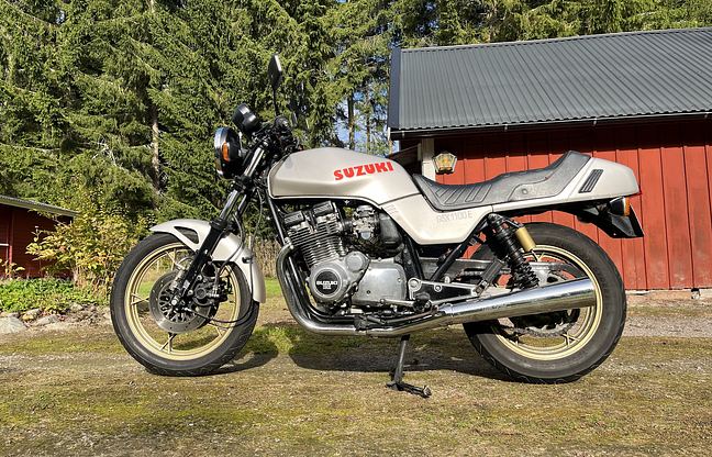 Suzuki GSX1100 från 1982 representerar en av de mest kraftfulla och spännande japanska superbikes från början av 1980-talet. Modellen blev omtalad redan vid sin debut tack vare Suzukis nydanande olje- och luftkylda motor med dubbla överliggande kamaxlar och 16 ventiler, som kombinerades med en avancerad chassikonstruktion och tidstypiska aluminiumfälgar. GSX1100 placerade sig snabbt i täten inom prestandasegmentet och är ett eftertraktat inslag för samlare och entusiaster än i dag.