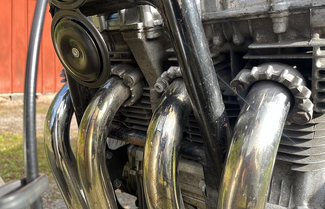 Detta fina exemplar har fått behålla sitt original avgassystem genom sitt långa mc-liv. När nuvarande ägare tog över hojen lämnade han direkt in den för en full teknisk genomgång hos MotoMate i Motala.