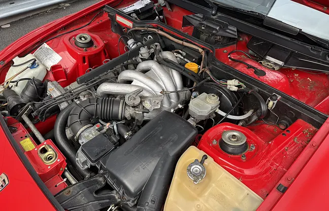 En 1988 års Porsche 944 med avtagbar takpanel för den som söker en välbalanserad transaxelbil med attraktiv lack och uppdaterade däck. Interiören är i gott bruksskick med en anmärkning på instrumentpanelens spricka och en repa på förarstolen. Mekaniskt uppges bilen vara i bra skick, och service 2024 tillsammans med samtliga kvitton ger stöd för underhållet.
