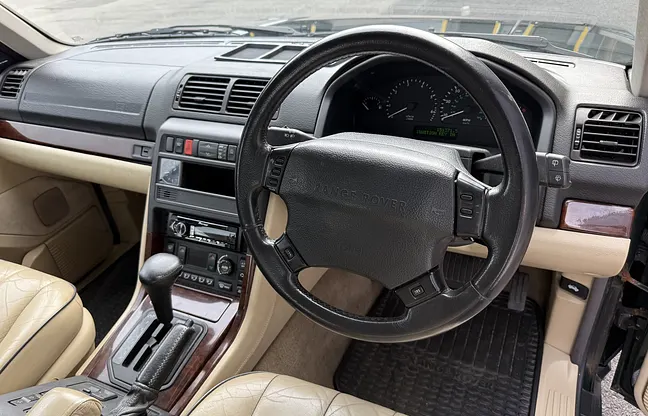 Notering: Utrustningsnivå och eventuella tillval utöver modelltypiska specifikationer är inte dokumenterade i underlaget. Modelltypiskt för Range Rover P38 är permanent fyrhjulsdrift med lågväxel, luftfjädring och ABS, men detta exemplar har inte verifierad specifikation av säljaren.