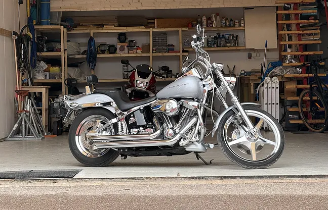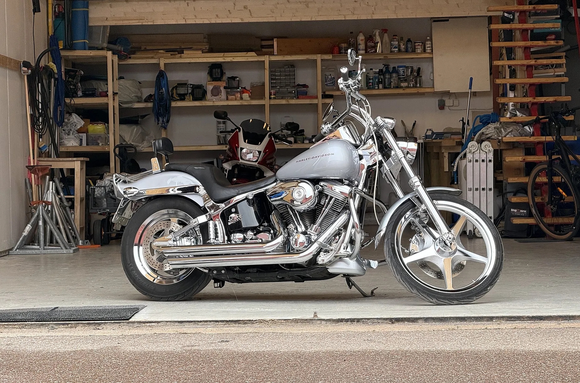 En FXST Softail från 1999 med den sista Evolution 1340-generationen i Softail-chassi och med tydligt fokus på krom, stil och uppgraderade detaljer. Denna hoj har enligt säljaren omfattande tillbehör, sänkt stödram, hydraulisk koppling, uppgraderat bromssystem, Python-avgassystem och dokumenterad historik med stor kvittomängd. Mätarställningen är 42 760 kilometer. Uppgift om svensksåld saknas.
