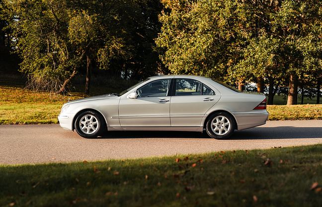 Mercedes-Benz S-klass av generation W220 lanserades mot slutet av 1990-talet och markerade ett tydligt teknik- och designskifte med lägre vikt, modernare elektronik, förbättrad effektivitet och mjukare linjer jämfört med föregångaren W140. S 320 med M112 V6-motorn är känd för att vara slitstark med kamkedja, jämn gång och god driftsäkerhet i kombination med 5-stegad automatlåda. För många entusiaster är en tidig W220 i originalutförande en attraktiv kombination av klassisk S-klass-komfort och användbar vardagsklassiker.