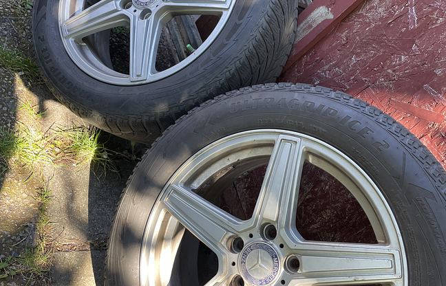 Däck och fälgar: Skick uppges som gott. Två kompletta uppsättningar originalhjul ingår, sommardäck på 16-tumsfälgar och vinterdäck på 17-tumsfälgar.